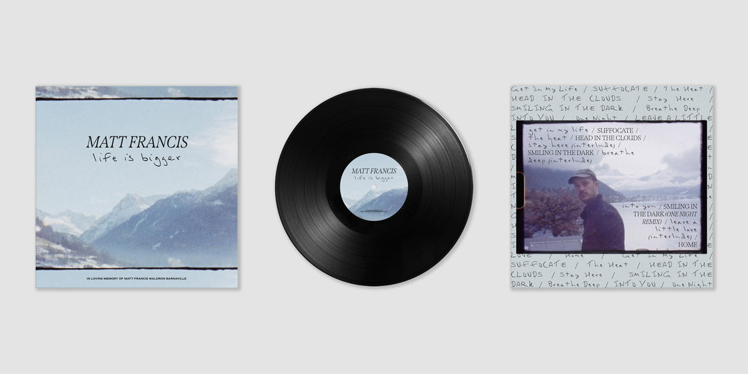 Life is Bigger is an album created by Matt Francis using just his guitar, loop pedal and computer. Matt recorded every song himself in the various places he loved — his bedroom in the middle of London, his dad’s house by the sea in Dover and the cabin in the snow in Switzerland, where he spent his final days. We finished the mixing and mastering of these songs so they can now be released how he intended.